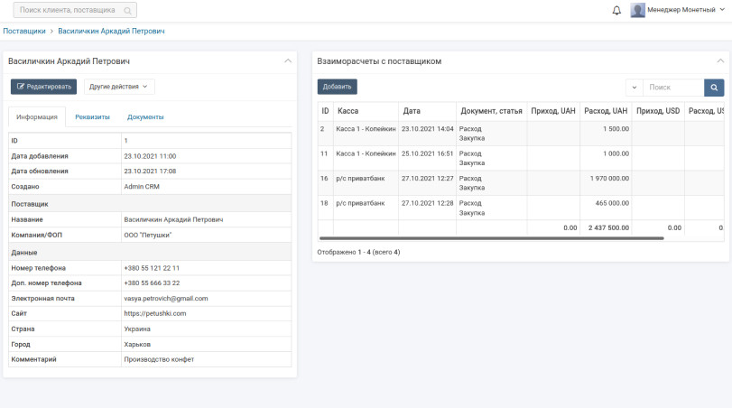 Вся база постачальників і повне зведення інформації щодо них гарантовано буде збережено у вас, а не у закупників. Поточні взаєморозрахунки та інформація про заборгованості - все зібрано в єдиному сховищі.